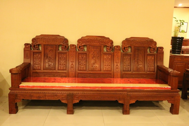大家好,今天我們福林堂紅木要為大家介紹的這一款沙發,其名字內容較為通俗意賅——“豪華如意”?!昂廊A”之意:一是代表其所選用材質——緬花的珍貴,二是因為那浮華鐫秀裝點紋飾的富麗;而如意則指的是這些紋飾在其內部所承載的深厚寓意,這其中包含有喻以吉祥富貴吸財之意的大象紋、代表祥和福瑞之意的麒麟紋、還有寓帶五福象征不老不衰的梅花紋、以及擁有幸福之意的蝙蝠紋、銅錢、魚紋、銅鈴紋飾等等,它們以物喻情,這也是紅木家具不同于多數一般類普通家具的重要標志所在,可以說,它們已經不單單是一件生活中的家具品那么簡單,這其中也包含了所使用主人內在的精神世界追求和意志情感寄托之需要。