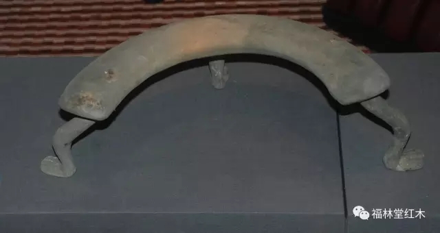 上圖是出土的西漢時期黑漆彩繪兩足的弧形憑幾這種也許是最早的憑幾形制。